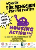 Aktionstag zum Thema "Wohnen" in der Münsterstraße am 26. März: Am Samstag 26.03.2022 gehen deutschland- und europaweit Menschen für den Housing Action Day auf die Straße, um für das Recht auf sicheren Wohnraum für Alle einzustehen. Bundesweit haben sich Initiativen als Aktionsbündnis gegen Verdrängung und Mietenwahnsinn zusammengetan.