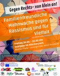 23. April 2024 Familienfreundliche Mahnwache gegen Rassismus und für Vielfalt am 26. April im Blücherpark