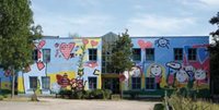 Zudem hatten sie die Möglichkeit, Entwürfe mit Hilfe eines PC-Malprogramms anzufertigen. – Die Gestaltung von Tageseinrichtungen für Kinder ermöglicht im Gegensatz zu Privatgebäuden einen sehr hohen Grad der Beteiligung. Die Zeichnungen wurden mit Hilfe von Photoshop in drei konkrete Entwürfe umgewandelt und durch die von den Kindern gesammelten Worte ergänzt. Die Entwürfe wurden den Kindern bei einem Abschlusstreffen vorgestellt. Eine Jury wählte schließlich den zu malenden Entwurf aus. Der Entwurf wurde von Alexandra und Ulrich Perchner sowie Peter Michalke künstlerisch umgesetzt.