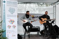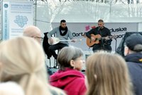 Um 15 Uhr betraten Akın Kocaoğlu und Özkan Taş die Bühne und spielten zur Einstimmung traditionelle und spirituelle alevitische Stücke mit Saz (Langhalslaute), Gitarre und Gesang. Näheres zu Kultur und Einblicke in das alevitische Leben in Dortmund erfuhr das Publikum anschließend bei einem vom Journalisten und nordstadtblogger Alex Völkel moderierten Podiumsgespräch: Melek Yıldız vom Vorstand der Alevitischen Gemeinde sprach von der Bedeutung der Saz in der Spiritualität der rund 5.000 Aleviten in Dortmund. „Norden und Süden zusammen zu bringen, das wollten wir auch musikalisch untermauern, indem wir Saz und Gitarre heute zusammen aufspielen lassen“, erklärte sie. Diese kulturelle Offenheit sei auch im alevitischen Glauben verankert, bei dem andere Religionen und Glaubensformen als ebenso gleichrangig anerkannt werden.