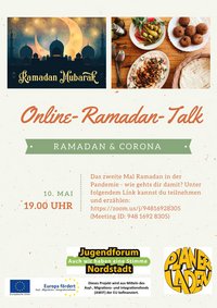 Der Planerladen e.V. lädt ein zum Online-Ramadan-Talk. Zum zweiten Mal findet der Ramadan während der Corona-Pandemie statt. In diesem jahr gilt sogar die bundesweite Ausgangssperre ab 22 Uhr. Das macht ein Zusammenkommen zum gemeinsamen Fastenbrechen fast unmöglich für die Muslim*innen in Deutschland.