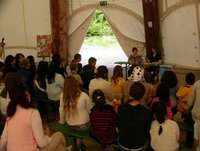 Hier konnten sie erleben, wie der Bassist der bekannten Musikgruppe "extrabreit", Lars Hartmann, und die Vorsitzende des DOTEV e.V., Meral Kahya, das Buch "Die Konferenz der Tiere" ("Hayvanlar Toplantısı") von Erich Kästner in deutscher und türkischer Sprache präsentierten. Im Anschluss ergab sich dann eine angeregte Unterhaltung zwischen den Vorlesern und den vielen kleinen Zuhörerinnen und Zuhörern über die Botschaft der Geschichte.