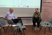 Anahita Lotfi und Pourya Solizadeh stellten gemeinsam den Sportverein SPARRINGFORYOU und dessen Projekt „Du bist nicht alleine“ vor. Sport dient dem Verein als Anknüpfungspunkt, um Inklusion, Gemeinschaft und Begegnungen zwischen Menschen mit und ohne Behinderung, Jung und Alt zu fördern. Auf diese Art werden nicht nur Vorurteile abgebaut, sondern auch Möglichkeiten geschaffen, aus einer Einsamkeit auszubrechen. Förderlich hierfür ist, dass der Verein sich nicht als reiner Kampfsportverein versteht, sondern auch weitere Aktivitäten organisiert. Kinoabende, Ausflüge, gemeinsames kochen und backen – im Mittelpunkt steht die Gemeinschaft und nicht der Boxring. Einen herkömmlichen Boxring besitzt der Verein ohnehin nicht, denn er ließ sich für das Projekt einen eigenen anfertigen. Dessen hochschiebbare Seile ermöglicht es im Rollstuhl sitzenden Menschen problemlos in den Ring zu steigen und mitzutrainieren. Dass die Angebote des Vereins gut angenommen werden zeigt sich daran, dass regelmäßig über 50 Menschen in der kleinen Turnhalle der Lessinggrundschule trainieren. Zuletzt organisierte der Verein sogar eine inklusive NRW-Meisterschaft mit annähernd 4.000 Besucher*innen. Trotz dieser Erfolge betont Anahita Lotfi, dass sie keine Musterlösung hat, um Einsamkeit zu besiegen, denn das Rausholen aus der Einsamkeit ist ein langwieriger Prozess der viel Zeit benötigt.