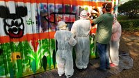 Bei spätsommerlichen Temperaturen zeigten sie große Ausdauer, obwohl die Arbeit mit Atemschutzmaske und Overall zum Schutz vor Farbe teilweise ziemlich schweißtreibend war. Vielen gefiel das kreative Schaffen so gut, dass sie sich gleich für die nächste Graffiti-Aktion des Jugendamtes anmeldeten.