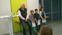 Andreij, Bader und Ibtissam blickten nach der Lesung stolz in die große Runde, auch ihre Eltern waren anwesend. Sie sind mit ihren Eltern vor kurzem aus Spanien nach Deutschland eingereist und haben innerhalb kürzester Zeit die deutsche Sprache erlernt. Ihre ursprüngliche Herkunft liegt übrigens in Rumänien und Marokko.