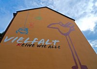 Vielfalt – (K)eine wie alle (Unnaer Straße 44) In der Nordstadt leben Menschen unterschiedlichster Herkunft und verschiedenster Kulturen Tür an Tür zusammen und ergeben gemeinsam ein buntes lebhaftes Wohnquartier. „Die Belegschaft von GrünBau spiegelt diese Vielfalt des Stadtteils wie ein Mikrokosmos“, sagt Andreas Koch, Geschäftsführer des Beschäftigungs- und Qualifizierungsträgers GrünBau, der seinen Sitz dort hat. „Manch einem mögen einige der Bewohner in diesem Stadtteil und manchem Mitarbeiter die Kollegen schräg und seltsam vorkommen: Sie sehen anders aus, haben andere Verhaltensweisen und pflegen andere Sitten und Gebräuche. Andere Menschen wiederum finden diese Vielfalt interessant, sie werden neugierig.“