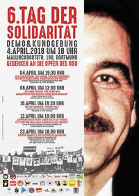 Mit dem „Tag der Solidarität“ sind wir, auch zum Ende des NSU-Prozesses, der voraussichtlich im ersten Halbjahr 2018 nach etwa 400 Verhandlungstagen zu Ende geht, am 04. April erneut auf die Straße gegangen. Auch am Tag der Urteilsverkündung, am „TAG X“ wollen wir demonstrieren. Denn es ist ein Urteil zu erwarten, welches nicht das gesamte Netzwerk aufdeckt und verurteilt, denn dieses wurde bis heute gar nicht aufgearbeitet und angeklagt. Der „NSU“ wurde bis heute nur als Trio mit einem kleinen Kreis von Helfern verstanden und wird auch wahrscheinlich so verurteilt.
