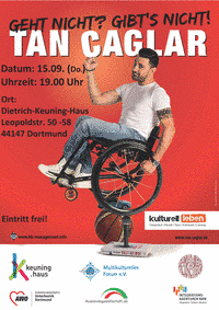 Dass es Tan Caglar wie kein anderer versteht, sein Handicap mit Inklusion, Witz und Ironie zu verbinden, hat er schon in seinem ersten Erfolgsprogramm „Rollt bei mir…!“ unter Beweis gestellt. Nach zwei Jahren auf Tour veröffentlichte der charmante Tausendsassa im Sommer 2019 seine gleichnamige Biografie. Darin entführt Tan den Leser auf eine emotionale wie humorvolle Gratwanderung.