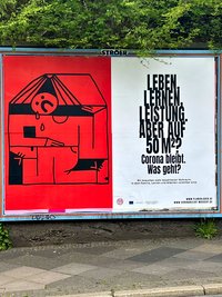 Die Kampagne "Corona bleibt. Was geht?" macht seit dieser Woche in Dortmund mit Plakaten auf die Themen mit dem größten Handlungsbedarf – Arbeit, Bildung und Wohnen – aufmerksam. Am Donnerstag, 21.04.2022 wurden die großformatigen Motive der Öffentlichkeit vorgestellt. An zehn Standorten sind sie noch über eine Woche zu sehen. Die grafische Gestaltung lag in den Händen der Dortmunder Agentur Florida.