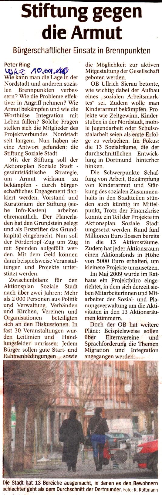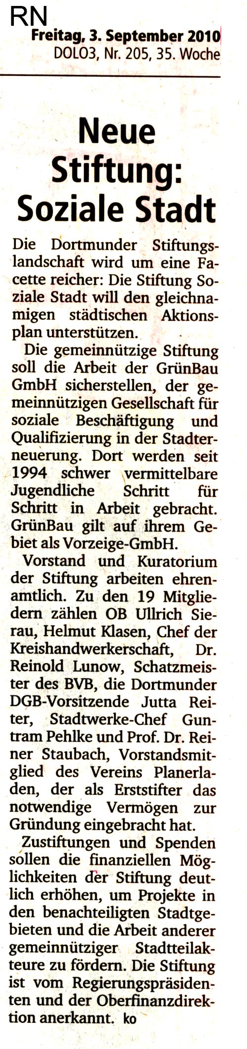 Die Dortmunder Stiftung Soziale Stadt hat nach Anerkennung durch die Bezirksregierung Arnsberg und die Oberfinanzdirektion ihre Arbeit aufgenommen. Die Stiftung wird den Aktionsplan Soziale Stadt auf vielfältige Weise durch bürgerschaftliches Engagement flankieren.