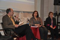 Pascale Gauchard begrüßte zum zweiten Bürgerforum „Nord trifft Süd“ am 23. April im Namen der Veranstalter sechs aktive Frauengruppen, die sich vorstellten und über ihre Erfahrungen berichteten. Sie freute sich über mehr als 100 Frauen, darunter gut die Hälfte aus den Reihen verschiedener Migrantengruppen, die der Einladung gefolgt waren. Kay Bandermann, der Moderator der Reihe, ging in seiner Gesprächseröffnung auf die Bedeutung der vielen Frauengruppen ein, die mit ihrem Engagement und Elan einen wichtigen Beitrag für das Zusammenleben leisten. In fast jedem Stadtteil in Dortmund gibt es Frauen, die aus ganz unterschiedlichen Gründen zusammenkommen. Allen Gruppen gemeinsam ist ihr Einsatz für Austausch, Dialog und Begegnung. Darüber zu berichten und sich zu vernetzen, ist das Ziel des Bürgerforums.