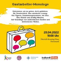 „Gastarbeiter-Monologe“ // Szenische Lesung im Rahmen der Veranstaltungsreihe KulturellLeben im Dietrich-Keuning-Haus am 28.4. um 19 Uhr