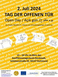 Am Dienstag, 02. Juli lädt das Konfliktmanagement Nordstadt des Projekts INKLUDO 2.0 von 12 bis 16:00 Uhr zum Tag der offenen Tür in der Schützenstraße 42 ein!