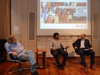 Josue Partida und Wolfgang Hartwich stellten den Iberoamerika-Kreis vor, der seit vielen Jahren ein interkulturelles Programm anbietet und die Gruppe „Cantamos juntos“ vor einigen Monaten initiiert hat. Die Gruppe versteht sich bewusst nicht als Chor im engeren Sinne, es ist eine jederzeit "offene Gruppe", die entstanden ist aus dem einfachen Wunsch heraus, gemeinsam in spanisch zu singen und zusammen zu kommen. Laut Josue Partida handeln die spanischen Lieder viel über die Liebe und die Revolution, vor allem, was die Lieder aus Südamerika anbetrifft. Wolfgang Hartwich betonte, wie wichtig Singen für das Wohlbefinden der Menschen sein kann und wünscht sich für die Zukunft, dass sich in Dortmund auch eine internationale Musikgruppe etabliert.