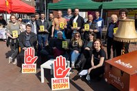Infos und Gewinnspiele zum Housing Action Day wurden von Nordstadt-Bewohner*innen und Passant*innen gut genutzt. Der Platz vor der St. Josephkirche füllte sich für den Housing Action Day in kürzester Zeit. Am 26.03.2022 machten mehrere Vereine auf die schwierige Situation von Mieter*innen aufmerksam und boten ihnen Informationen.