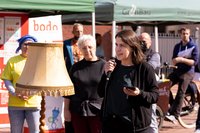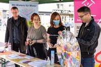 Mitten auf dem Platz bot eine Couch einen Platz für Gespräche zur Wohnsituation und ein Glücksrad kleine Gewinne für die interessierten Besucher*innen. Das Glücksrad war vor allem bei den Kindern beliebt. Mit dem Dreh an der „Preisspirale“ konnte man nicht nur etwas gewinnen, sondern auch viel über aktuelle Mietangebote in Dortmund erfahren. „Mit dem Ansturm hätten wir nicht gerechnet. Die Kinder waren alle total neugierig und haben am Glücksrad nach den Mieten gefragt. Vielen Dank an alle, die uns besucht haben und an unsere Helfer für ihren Beitrag zum Housing Action Day 2022“, so Anna Tenholt und Fatlinda Bajramaj, vom Projekt „Nordstadt to go!“.
