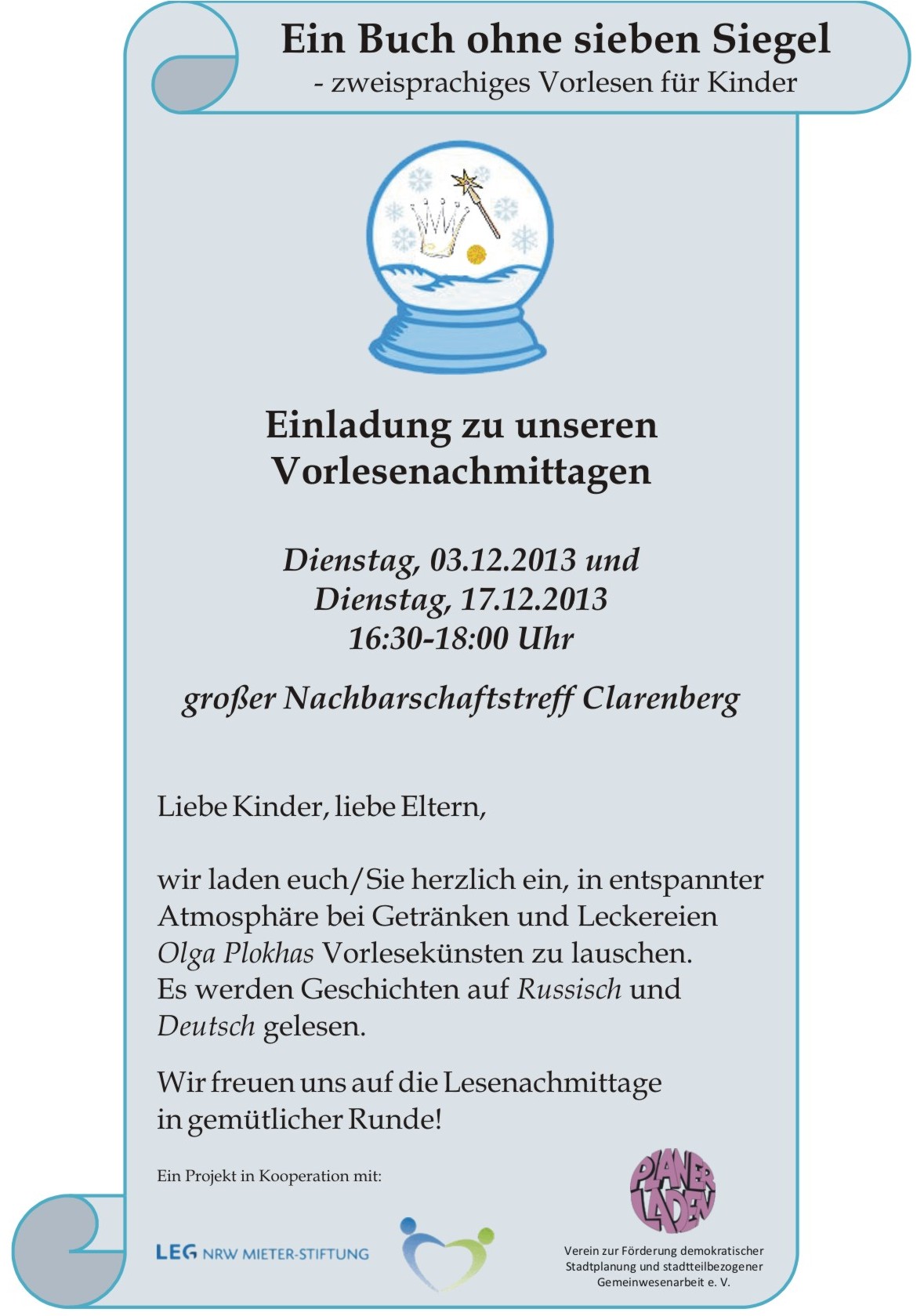 - Kinderlesenachmittage "Ein Buch ohne sieben Siegel"